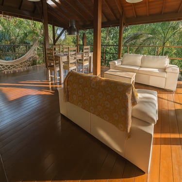 Vous profiterez d’un vaste salon lumineux avec bar, d’une cuisine ouverte entièrement équipée, d'un barbecue en arriere cuisine, et d’un immense deck ombragé qui entoure la maison, idéal pour vivre dehors comme dedans.